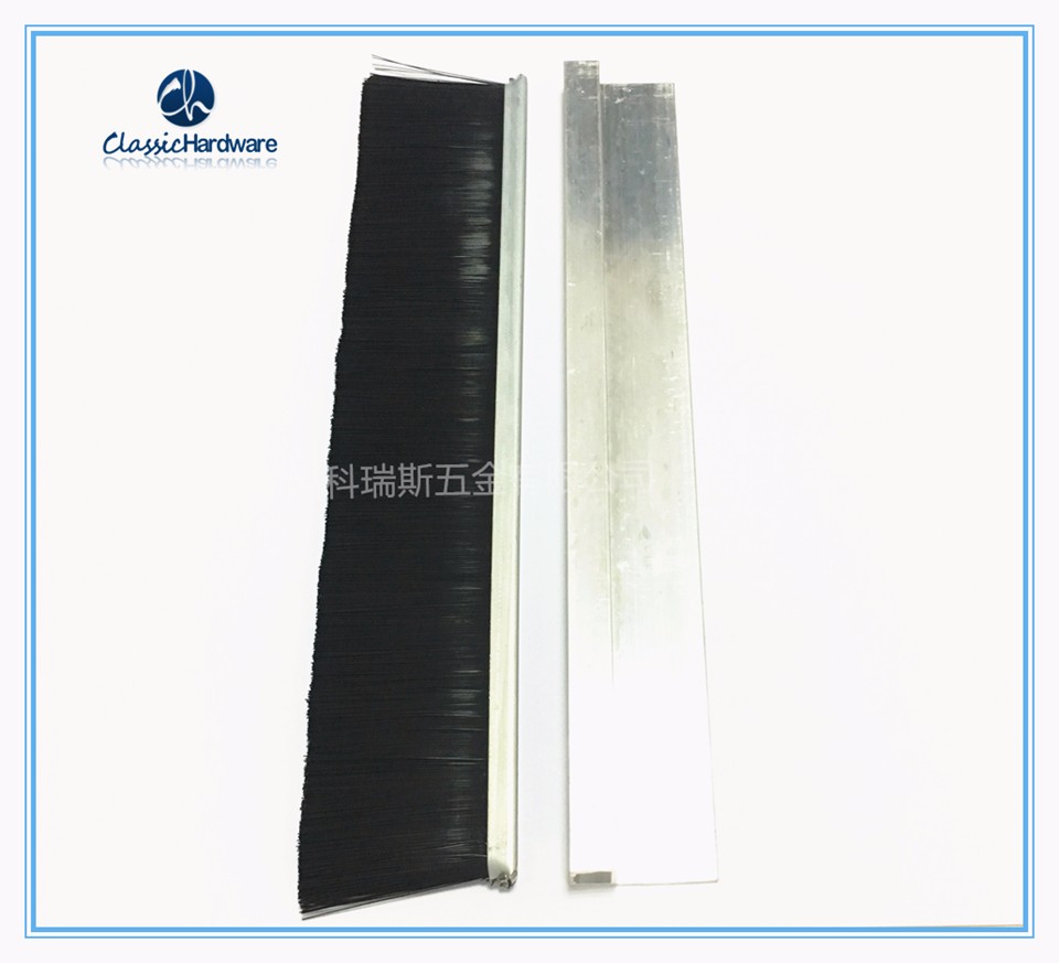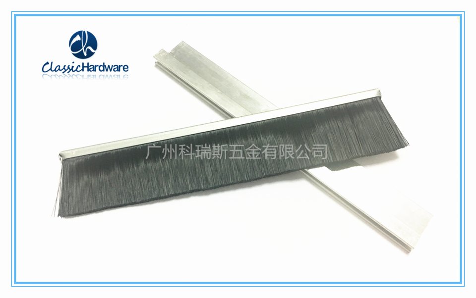 工業(yè)門(mén)、卷簾門(mén)、快速門(mén)一般使用H型(180°)或者F型(90°)鋁條配套毛刷,毛刷的高度常用規格是35mm,50mm,100mm,毛料有PP,PA。